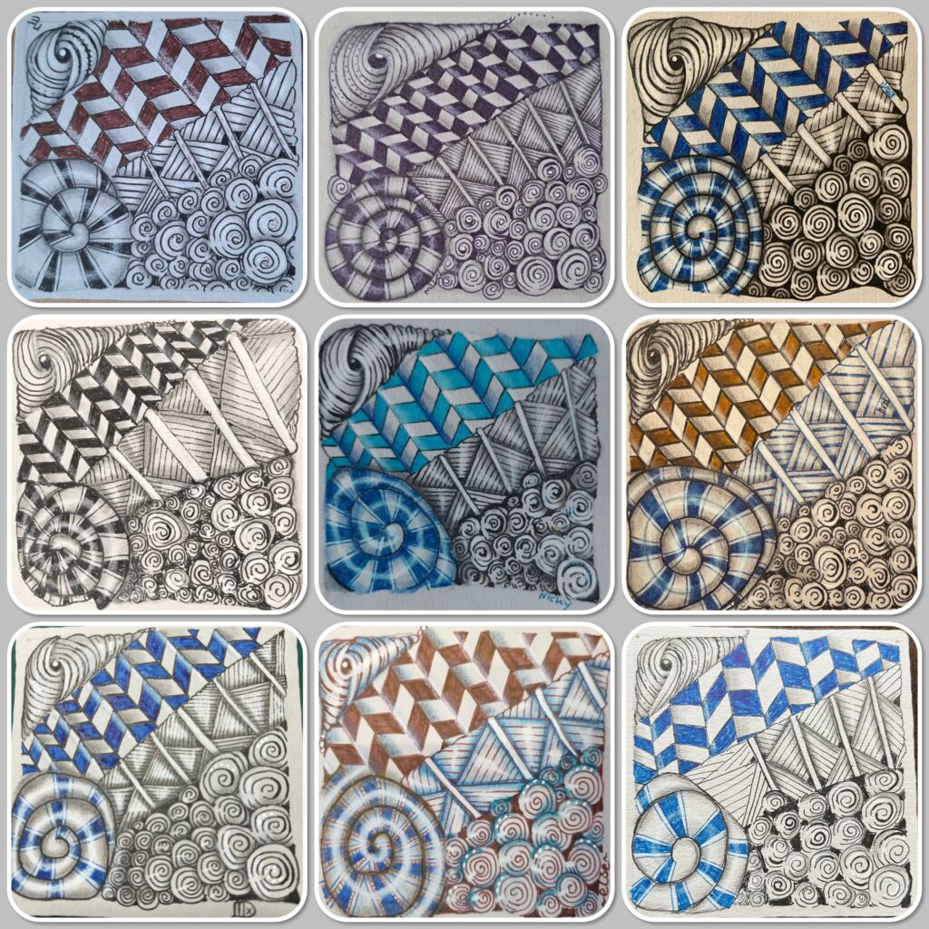 Cursus 6-7 weken via ZOOM, online. Basis- en gevorderden cursus van 6 weken, online vanuit je eigen woonkamer- heel goed om alleen te doen. Je hoeft de deur niet uit en leert de fijne kneepjes van zentangle.